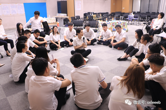 培训过半,大家更加自然起来,席地而坐针对下半年业绩目标分解进行模拟会议商讨演练。